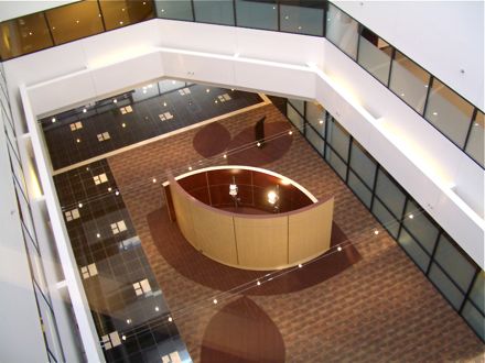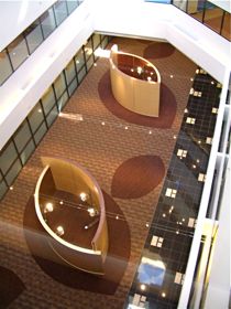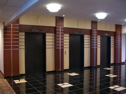 In addition to the central open core of the building, we also upgraded the elevator surrounds on the main floor, updated all the colors and flooring in the common areas and designed new building common features such as conference room and work-out room.