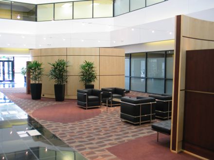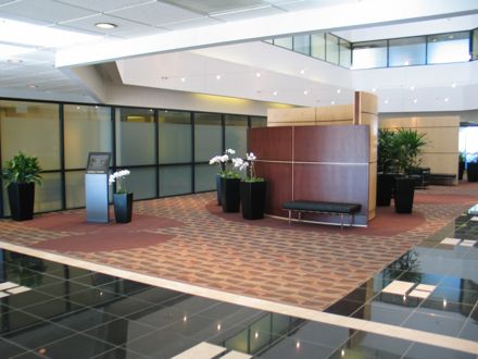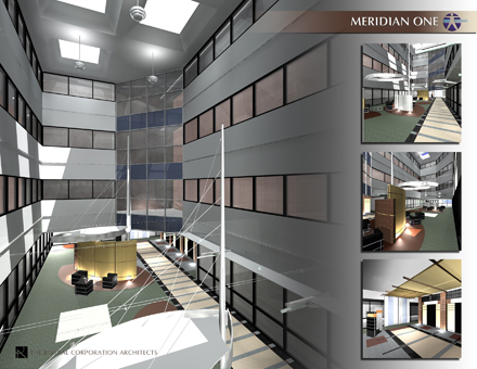 This early 1980's five-story office building had been recently purchased. This is the first building one sees as they enter this important Denver metropolitan office park. The new owners wanted to update the look and feel of the building. The Roybal Corporation assisted with extensive pre-construction visualization and selection of features to bring forward to construction. The final product updated and brightened the space.