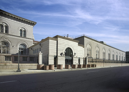 The US Mint in Denver has expanded many times over its 100-plus-year history at this location. Built in 1904, the original entrance on Colfax Avenue had been closed to the public. Many years ago, a new visitor entrance was built to the east, allowing tours through the building, but visitors to the Coin shop (Numismatics room) and Mint employees had no real entrance. This addition to the Mint featured a new entrance that was designed to consolidate those services in a new and dramatic front to the building.