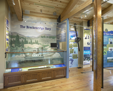 Visitor exhibits include: a “mine-shaft” elevator, a children’s loft with interactive educational games, a scale model dredge boat diorama, an “underground mine” theatre, as well as a tribute to the environmental efforts the Town of Breckenridge has undertaken in the past twenty years to return the surrounding habitat to “better than they found it.”