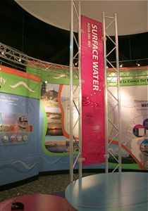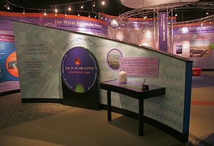 The Tech2o Center shows off this technlogy in a dynamic and exciting exhibit center. The exhibits were designed, fabricated and installed by The Roybal Corporation. To see a photo essay on the Tech2o Center, please click here. To see El Paso Water Utilies web page on the Tech2o Center open house, please click here. If you are interested in more information about the Center, please click here. |