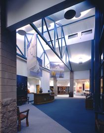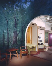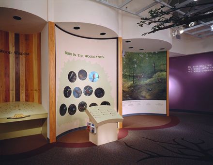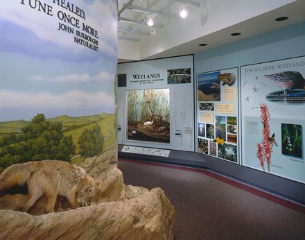 In addition, the Roybal Corporation provided interpretive master planning, exhibit design and fabrication of $1.2 million of exhibits that tell the story of the diverse habitats of the Great Plains region. A variety of interpretive methods were used, including large-scale dioramas, ambient animal sounds, fiber-optics to illustrate the Kansas waterways, and an 8-foot-high freshwater aquarium to house native fish. The building, exhibit hall and surrounding park now serve as a focal point for community recreation and education in the greater Wichita area.